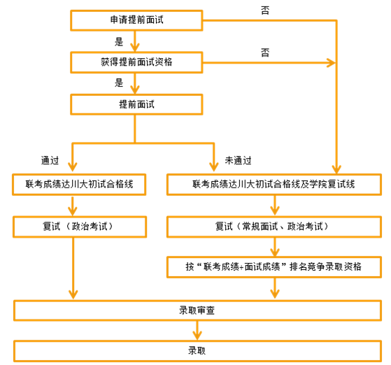1、所有符合全國聯(lián)考報(bào)考條件的考生均可申請參加提前面試,學(xué)院根據(jù)提前面試成績給予考生 “通過”和“未通過”兩類結(jié)果。