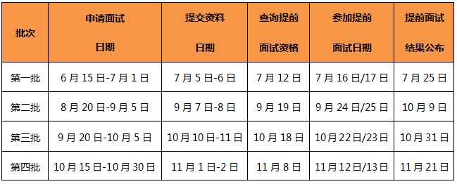 每位考生只能申請一個(gè)批次的提前面試,不可重復(fù)申請。